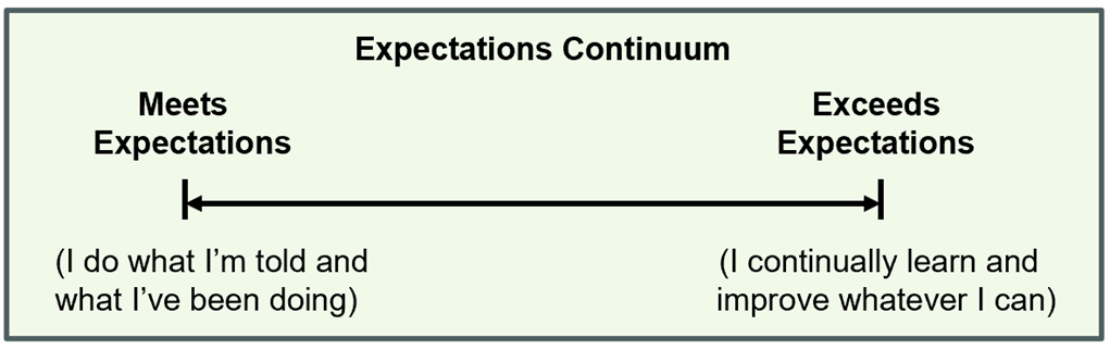 Where do you land on the “expectations continuum?” What is your philosophy in regard to doing more than is minimally expected? What example do you strive to set for others in your sphere of influence? Are you a person who “does what I’m told” or “continually learns and improves whatever I reasonably can?”